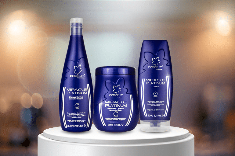 Uma linha completa, como a Miracle Platinum da Clorofitum, permite que você trate, neutralize tons indesejados e proteja os fios em poucos passos, sem ressecar o cabelo. Continue encantando com a sua beleza.